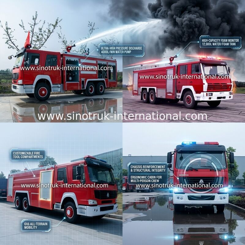 Пожарная машина, также известная как пожарная машина, специально использована для пожара или другой аварийной ситуации используя корабли. Пожарные машины можно расклассифицировать согласно функциям пожарной машины цистерны с водой, пожарной машины пены, аграрной пожарной машины, бой пожара и другой экстренныйый выпуск брызгать тележка и используя корабли. Пожарные машины обычно помещаемые на пожарном депо, встрещенном сигналу тревоги пожарными для того чтобы управлять местом. Шасси пожарной машины серии SINOTRUK HOWO доработало жидкостную пропускную способность 8 тонн, 12 тонн, 16 тонн топливозаправщиков воды, пожарной машины пены и других продуктов.